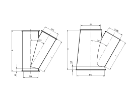 Full welded cylindrical branches at 30º with three same diameters or conical with different diameters.