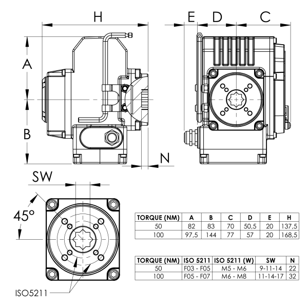 | Bộ truyền động quay điện HB50 220V AC 50Nm (-20°/+70°) IP67 DIN-ISO 5211 | NDAA000001 |