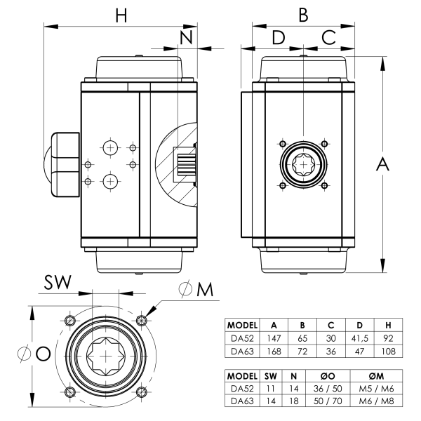 | Bộ truyền động quay khí nén DA52 CE (-20°/+80°) DIN-ISO 5221/DIN 3337/G1/4' NAMUR | NDBA000001 |