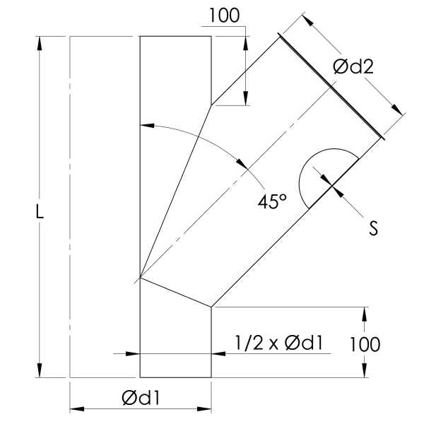 Nhánh rẽ được hàn lăn dọc thân với nhánh phụ hàn điểm, dùng cho hệ thống áp suất dương, áp suất âm và không áp.