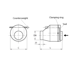 Van một chiều tay hàn kín hoàn toàn có đối trọng. Được lắp ráp với đai 2 mảnh để dễ mở trong trường hợp bị tắc nghẽn hoặc tích tụ vật liệu. Đối trọng có thể được khóa ở vị trí mong muốn bằng đai ốc cánh chuồn để có luồng khí tối ưu.