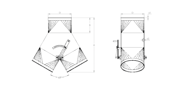Van chia dòng đối xứng điều khiển tay hàn kín hoàn toàn dùng cho vận chuyển vật liệu rời đến silo, container và các loại tương tự. Việc đổi hướng dòng vật liệu được thực hiện bằng cách di chuyển tay gạt từ trái sang phải. Nó được giữ cố định tại vị trí bằng núm vặn hình sao trên tay cầm. Trục tấm chặn bên trong được gắn trên hai vòng bi để vận hành êm ái. Các van chia dòng này được thiết kế để sử dụng cho vật liệu rơi tự do và vận chuyển khí động nhẹ (ví dụ: dăm gỗ, polystyrene, vật liệu không sợi, v.v.) trong đường ống thẳng đứng.